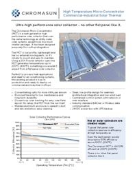 The Chromasun Micro-Concentrator (MCT) is a next generation high performance solar collector that uses the same technology as utility scale solar systems, except now in a much smaller package. It has been designed purposely for rooftop integration.