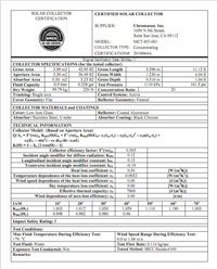 At a constant 176°C (350°F) test temperature, Chromasun MCT-HT acheived the highest temperature rating ever tested under the SRCC Standard 600 "Test Methods and Minimum Standards for Concentrating Collectors”. Chromasun MCT is subsequently certified under OG-100 which is the principal rating for all solar collectors in the United States. Chromasun MCT-HT has also met the EN 12975-2 European Standard for Solar Concentrators.